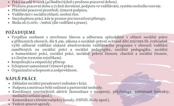 Již pátým rokem realizujeme projekt Náprava vztahů v rodině, který byl podpořen z dotačního programu Ministerstva spravedlnosti. Projekt vznikl na základě diskuzí […]