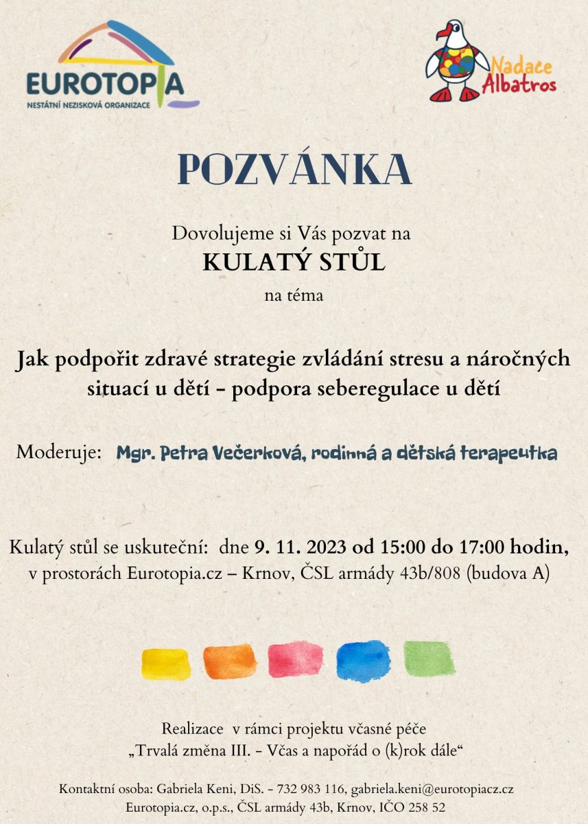 Kulatý stůl na téma „Jak podpořit zdravé strategie zvládání stresu a náročných situací u dětí – podpora seberegulace u dětí“