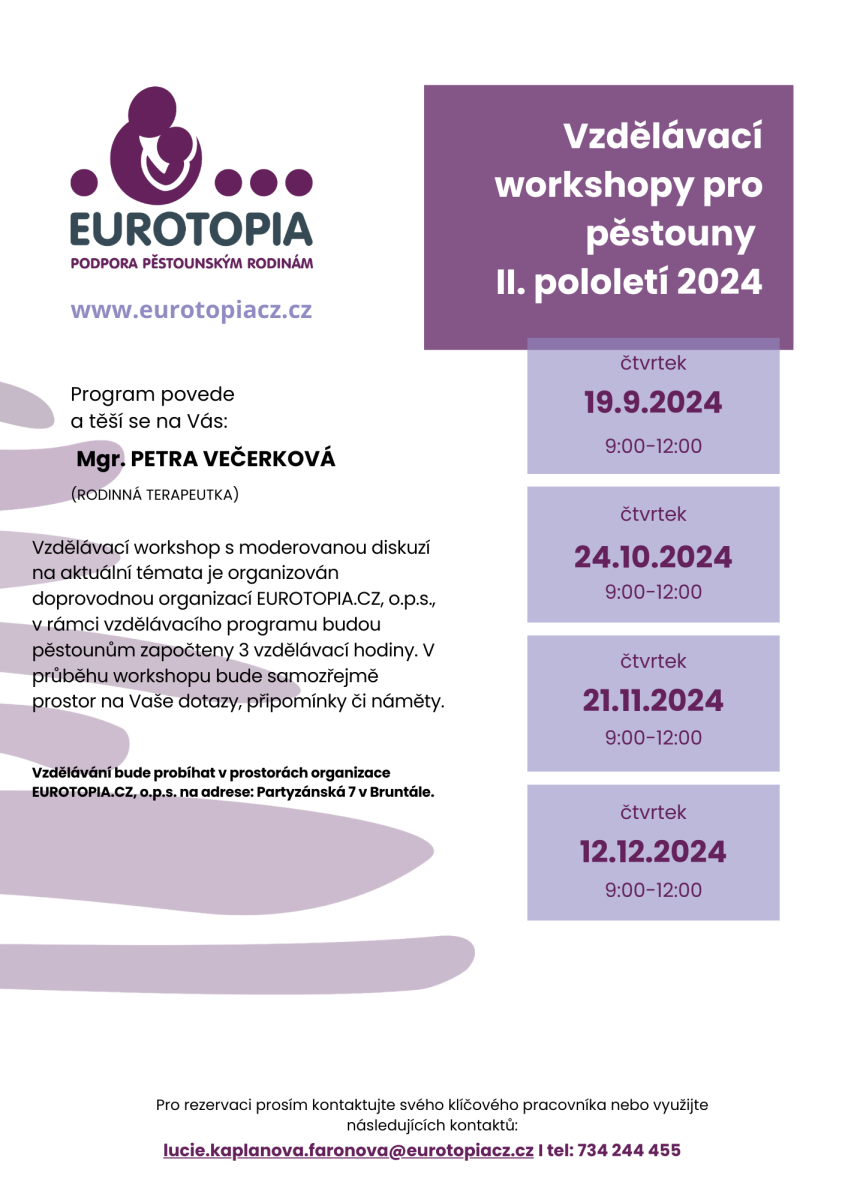 Vzdělávací workshopy pro pěstouny II. pololetí 2024