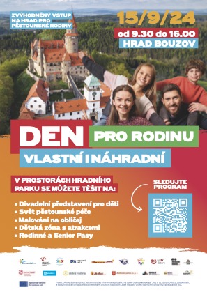 V neděli 15. září se můžete těšit na již tradiční Den pro rodinu vlastní i náhradní. Celá akce se letos uskuteční na hradě Bouzov, který návštěvníkům nabídne řadu aktivit. Program odstartuje o půl desáté dopoledne.
