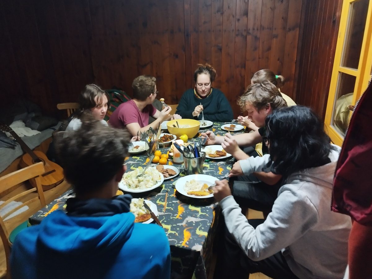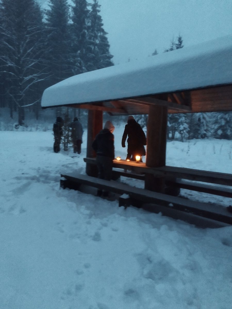 V pátek 1. prosince jsme vyrazili na třídenní víkendový pobyt pro odvážné dobrodruhy od 15 let. Úplně mimo všechny naše plány nás 9 (3 vedoucí a 6 odvážlivců) na lesní chatě Slonkovka v srdci Rychlebských hor zavalila veliká sněhová nadílka. Tak jsme si vyzkoušeli poctivou Ladovskou zimu. A to se vším všudy – prokopávání cestiček, štípání dříví, topení v kamnech a vaření v kamnech, sušení se kde se dá… Všichni jsme se shodli, že ta doba byla velice těžká, a jsme moc vděční za výdobytky moderní doby, které si možná ani neuvědomujeme.
