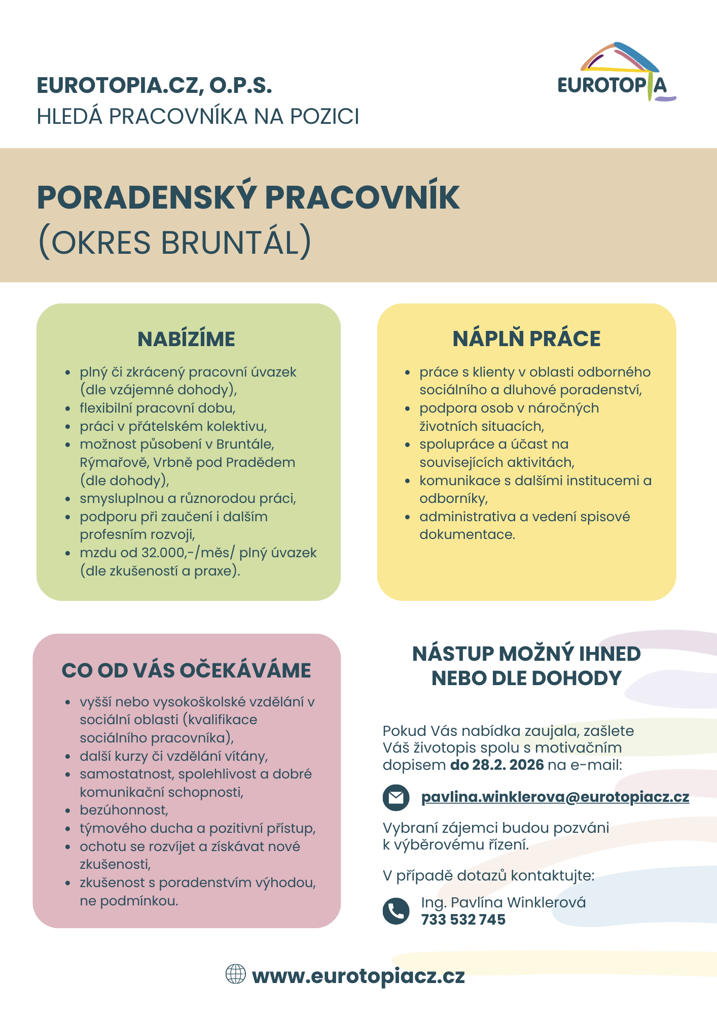 Krnov: e-mail: pavlina.winklerova@eurotopiacz.cz, tel: 733 532 745