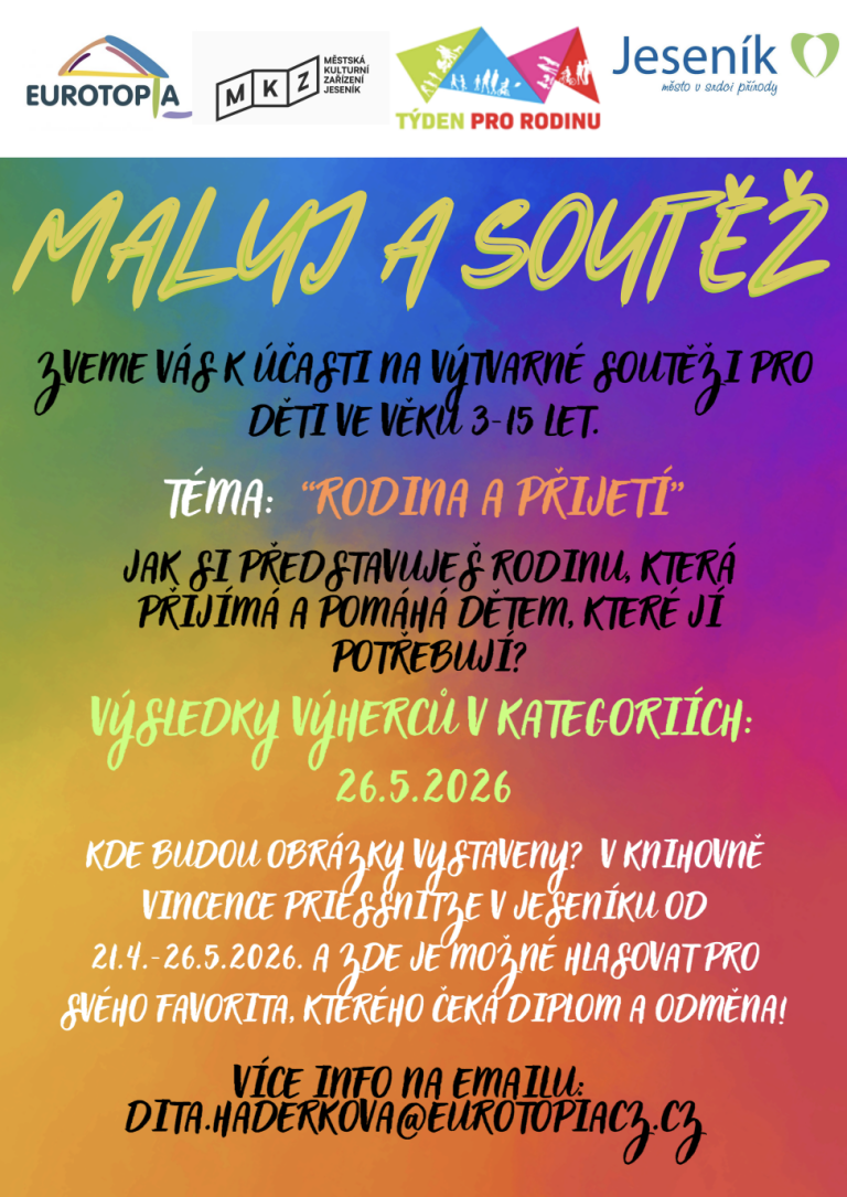 Ve dnech 21. dubna až 26. května 2026 pořádá organizace EUROTOPIA.CZ, o.p.s. ve spolupráci s Knihovnou Vincence Priessnitze již 4. ročník výtvarné soutěže „Rodina […]