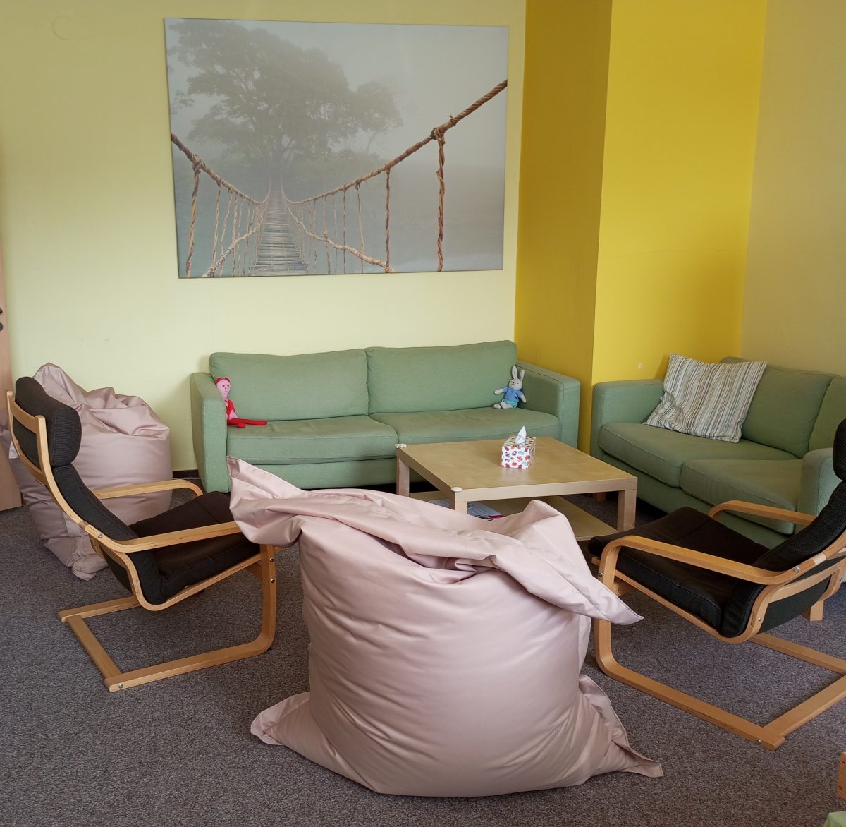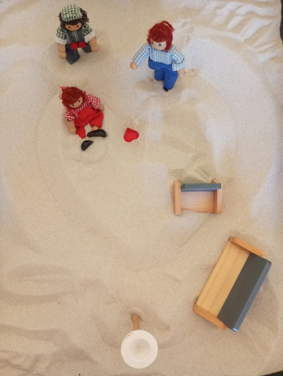 Díky projektu jsme mohli také dokoupit pomůcky do naší terapeutické místnosti, konkrétně byly zakoupeny dva dětské sedací vaky, které nám velmi chyběly, protože děti se do nich v rámci konzultací velmi rádi usazují, cítí se v nich bezpečně. Dále jsme mohli díky projektu dokoupit speciální písek na doplnění terapeutických pískovišť, se kterými naši terapeuti pracují při konzultacích s dětmi velmi často. Terapeutická práce na pískovišti, neboli Sand Tray, je u dětí velmi oblíbená a po konzultacích zejména právě u malých dětí písek velmi rychle z pískoviště mizí.