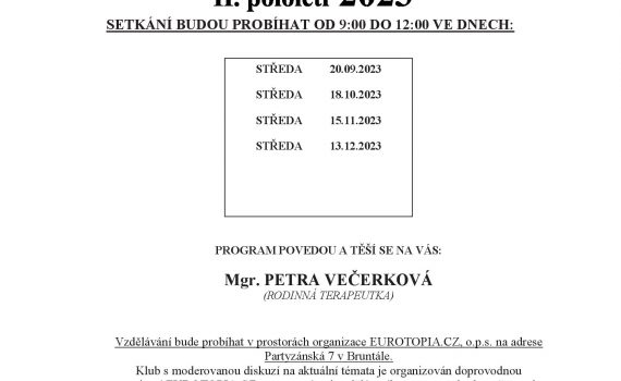 Srdečně vás zveme na benefiční akci „DEN RODIN S OTEVŘENÝM SRDCEM ANEB SPOLU RUJKUV RUCE“, která se uskuteční dne 23. 9. 2023 v Trojhalí Karolina v Ostravě […]