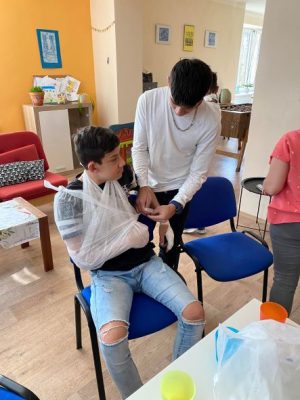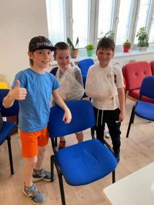Ve čtvrtek 14. dubna 2022 proběhl v prostorách Eurotopie – doučovacího klubu při NZDM Klubu Modrá kočka v Opavě vzdělávací workshop pro děti a mládež na téma: „První pomoc – co je to trojcípý šátek a jak ho použít„.